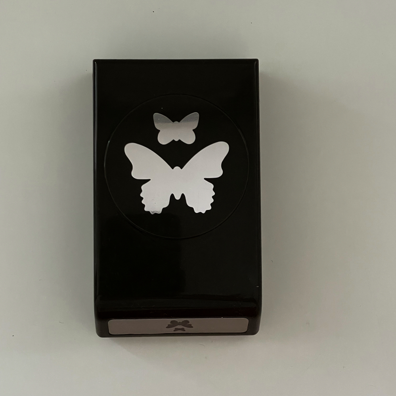 Die Handstanze Schmetterlingsduett ist wenig genutzt. Der große Schmetterling hat eine Flügelbreit von links nach rechts von 4,7 cm und der Kleine von 2,2 cm